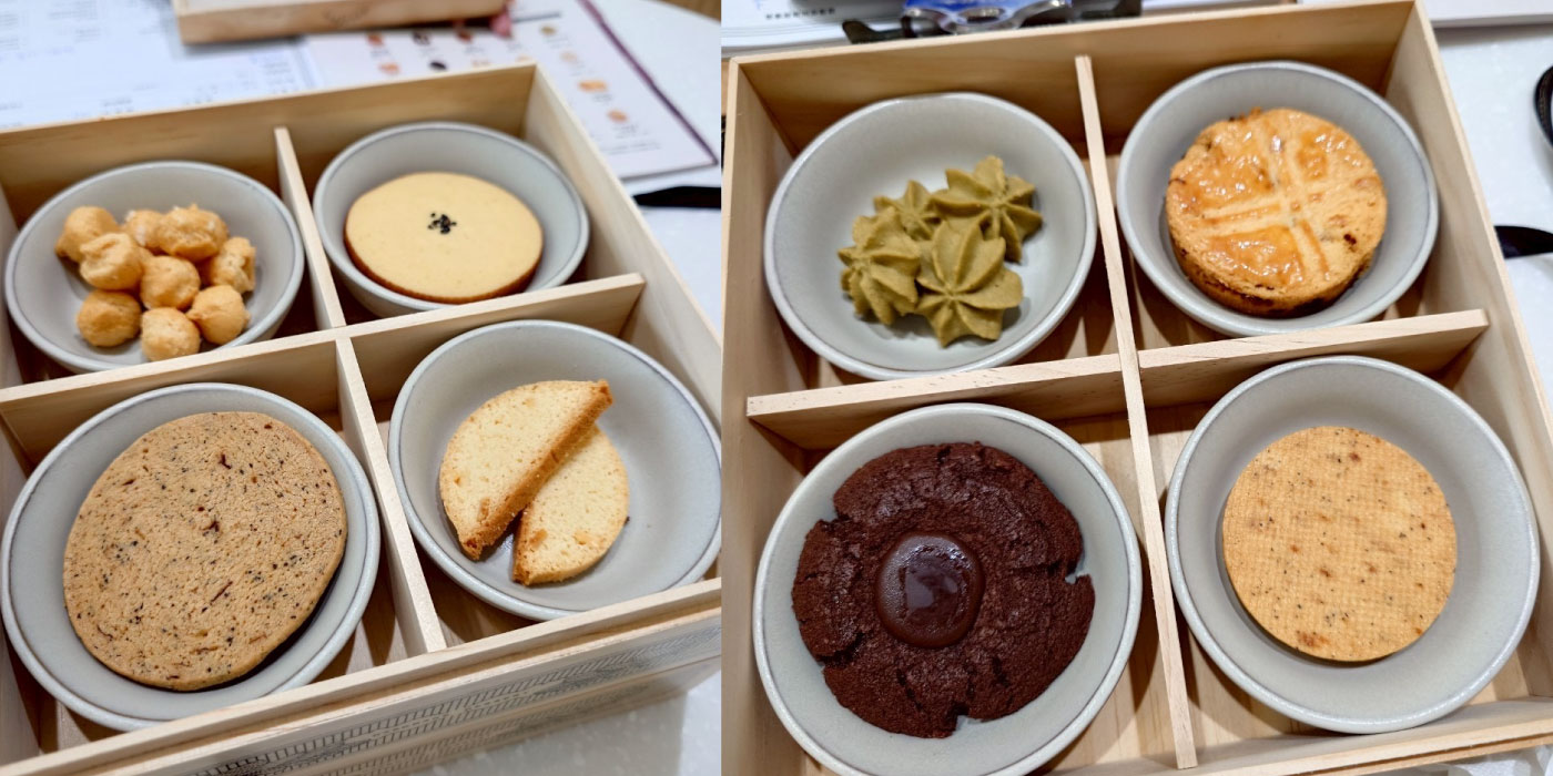 挑選完試吃餅乾,當打開木盒上層,每一款餅乾都放在精緻的陶盤中,排列整齊,就像甜點店的展示櫃。