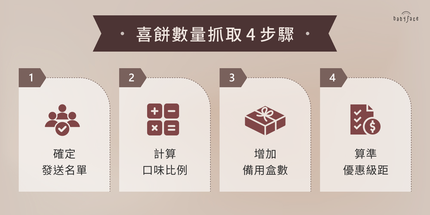 下面 babyface 將說明估算喜餅數量的大原則,以及口味、包裝、價格等 3 大關鍵考量,讓您更精準地預估,避免喜餅數量過剩或不足的窘境。